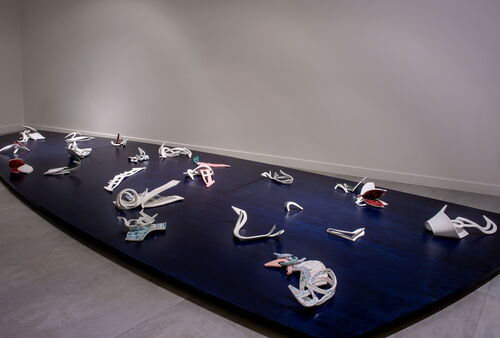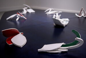 It is, therefore, no coincidence that in recent years, Rebekka has started to build mobiles (‘Dangling’, 2017). The mobiles could be considered a metaphor for her paintings. The mobiles show the impossibility to perceive the world from one angle. A mobile gives back your body to your sight. It is this recovered physical perception that is experienced when contemplating this work.