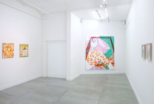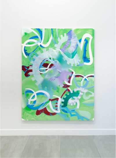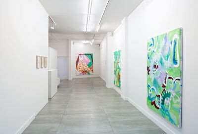 The works of Rebekka Löffler seem lucid, friendly, and fresh. Colours are vivid and joyful. Patterns and repetition give most paintings a lively rhythm and a sense of transparency and order. These paintings are not the result of a tormented battle between maker and matter. There is no visible labour or sweat.