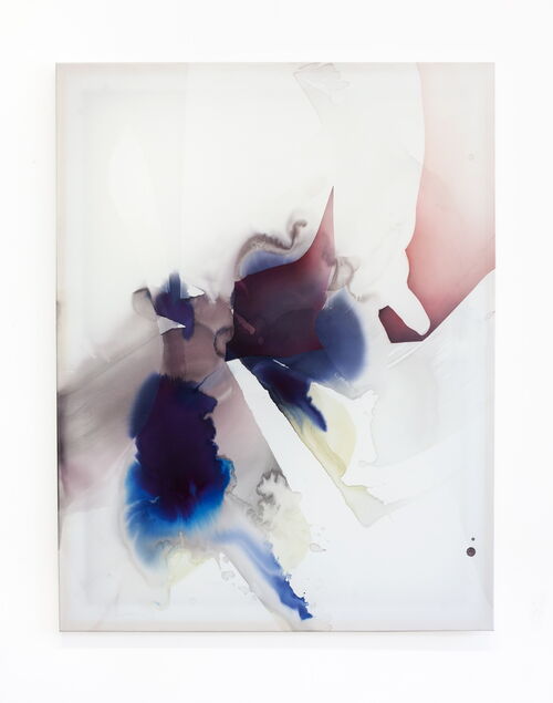 Schmitten’s fluid and breathing paintings take their beginning in the translation of physical constellations and movements into painterly gestures. Sensual experience resonates in complex compositions of transparent and flowing surfaces that overlap, intersect, and interweave foreground and background.