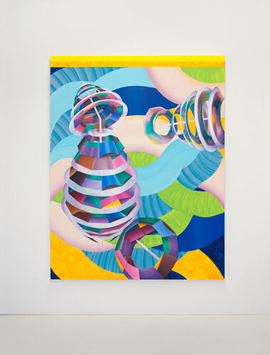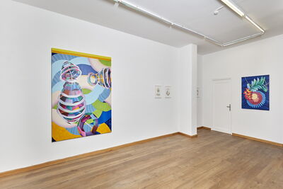 These concepts were Rebekka Löffler’s core ideas for the abovementioned paintings and drawings. Her aim was not to represent the outer form of different species, but to depict life as such, as is it is inherent in every living being. In order to achieve this, the artist decided to use forms based on invented paper models, reminding us of flowers or plants as the core element of the paintings. They are a further development of the artist’s vocabulary of forms from recent years.